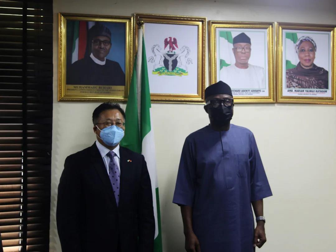 驻尼日利亚大使崔建春到任拜会尼工贸投部长阿德巴约